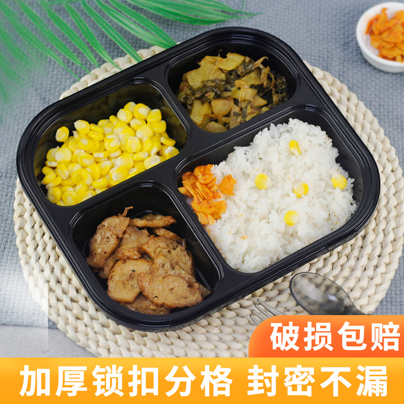 一次性打包盒 外卖四格打包餐盒带锁扣防偷吃加厚多格快餐盒